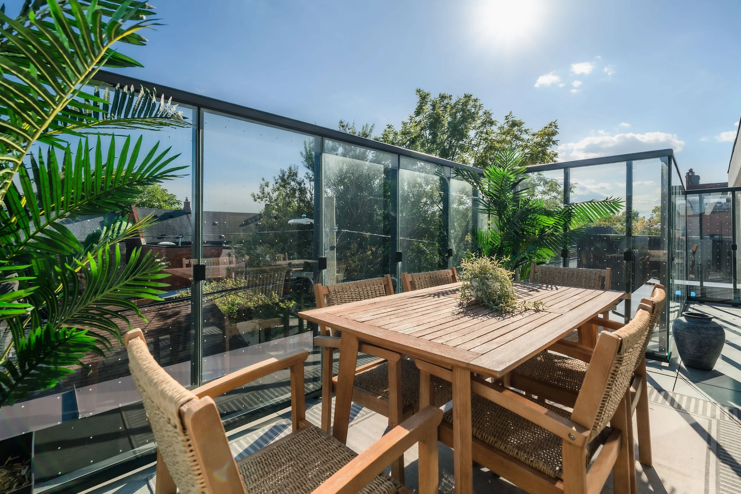 Exterior and terrace work included installation of tile pedestal systems, 2cm patio tiles, aluminum pergolas, and patio furnishings. All work was completed in coordination with the project’s construction team to meet design standards, sequencing requirements, and overall project delivery timelines.